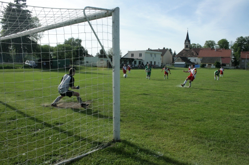 Mohla ale přijít ihned po třech minutách druhé půle. Ale paradoxně se mohli dotáhnout na rozdíl jedné branky zelenobílý. Rapšach se ve velkém počtu vydal na zteč hostující brány, tam ztratil balón, který pod svůj patronát vzal Radek Puhlovský a ve spolupráci s Keněm po levici a Bočkem na pravé straně uháněl do protiútoku. Za půlící čárou nádherně míč prostrčil mezi dvěma obránci na svého kapitána, který vyvinul vysokou rychlost a postupoval sám na nudícího se "Derviše". Napřed mu chtěl udělat kličku doleva a zakončit do prázdné branky, ale když viděl, že při výběhu gólman padá na levou stranu, tak se rozhodl ho obstřelit zprava, ale trefil špičku levé nohy domácího matadora. Libor Šroub si mohl otřít pot z čela a vydýchat se - měl na to dalších 42 minut, kdy již nedošlo k ohrožení jeho branky, pouze stáhl do svých rukavic tři nepovedné centry. Čím dál víc unavení hosté se již soustředili na bránění. Domácí se dostali k ohrožení branky výrazněji pouze střelou z dálky, kterou opět Honza Pytel ml. nasměroval do břevna a také závarem, který vyřešil na brankové čáře neskutečným zákrokem Ficíno, který si poradil i s několika dalšími ranami z dálky.