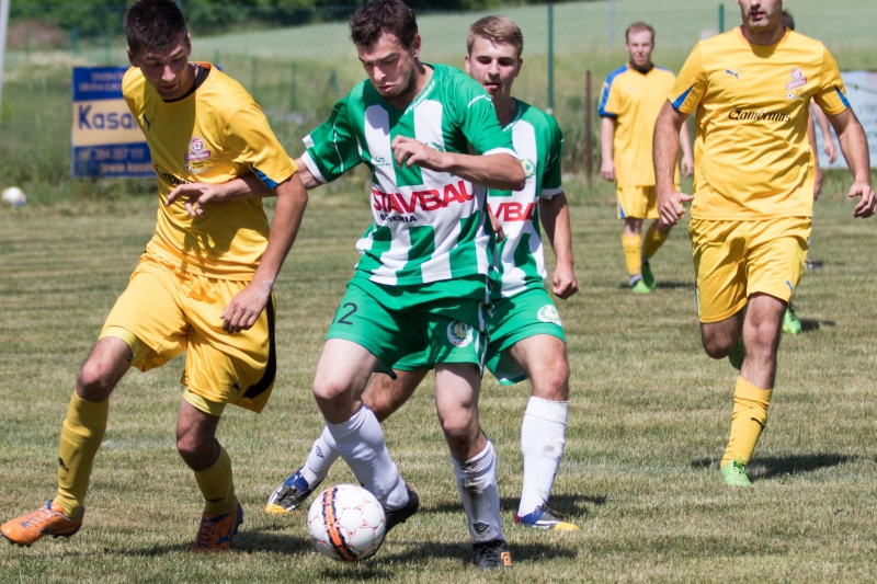 Největší derby pro Rapid i Plavsko se odehrávalo za horkého počasí. Domácí se po dvou na počet lidí skoupých zápasech sešli ve čtrnácti hráčích. Ale pro začátek mače to evidentně nebyla výhoda. Již ve druhé minutě se po rohu ocitli tři nekrytí hráči Plavska před malým vápnem a odchovanec Rapidu Víťa Šnajdr dostal míč i přes snahu Lukáše Kodyma a Petra Bočka pár centimetrů za brankovou čáru - 0:1. Úvod celkově nezastihl Rapid v dobré pohodě. Na stoperu výrazně chyběl důrazný David Vacek, který pykal za vyloučení v minulém zápase. V osmnácté minutě převahu hostí zúročil Jirka Heřmánek, který zvýšil na rozdíl dvou branek - 0:2. Stalo se tak po obrovských chybám v defenzivě domácích, když Hozna Kandl ve snaze odehrát míč do bezpečí dvakrát trefil Šnajdra, který uzmul balón a vyzval střelce Heřmánka ke skórování. Rapidu se podařilo naštěstí snížit rychle, když přímák z osmnácti metrů rozehraný Honzou Demeterem, mírně hlavou lízl hráč ve zdi a tím zmátl Jirku Novotného v bráně - 1:2. Nehrál se zrovna moc pohledný fotbal a do poločasu se do šance dostal za domácí pouze Petr Boček, který z dálky trefil sice přesně, ale slabě, s čímž neměl Novotňák problém. Párkrát se také předvedl Lukáš Kodym, který vyřešil několik ošemetných situací před svéjí brankou. V zelenobílém dresu vystrašil Novotného ranou z šestnáctky po výtečném zpracování Kuba Maxa, ale nadvakrát si matador mezi tyčemi s jeho pokusem poradil. Plavečáci se dostali do dvou výrazných příležitostí, když hlavně Vlasta Jeremiáš vyškolil náhradního stopera Bočíse, ale míč poslal těsně vedle tyče. Podruhé po nedůrazu Milana Mašáta skončila meruna o pár metrů mimo.